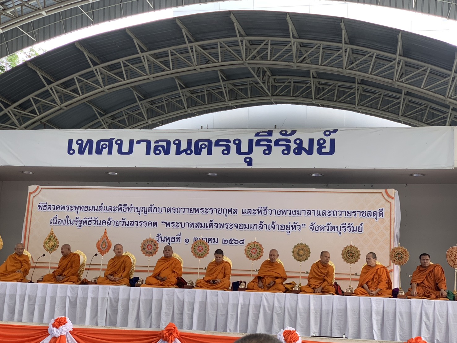 วันที่ 1 ต.ค. 2568 มหาวิทยาลัยรามคำแหง สาขาวิทยบริการฯ จังหวัดุรีรัมย์ ร่วมงาน พิธีสวดพระพุทธมนต์และทำบุญตักบาตรถวายพระราชกุศล และพิธีวางพวงมาลาและถวายราชสดุดี เนื่องในรัฐพิธีวันคล้ายวันสวรรคต "พระบาทสมเด็จพระจอมเกล้าเจ้าอยู่หัว" ณ โดมสวนรมย์บุรี 200 ปี เทศบาลนครบุรีรัมย์