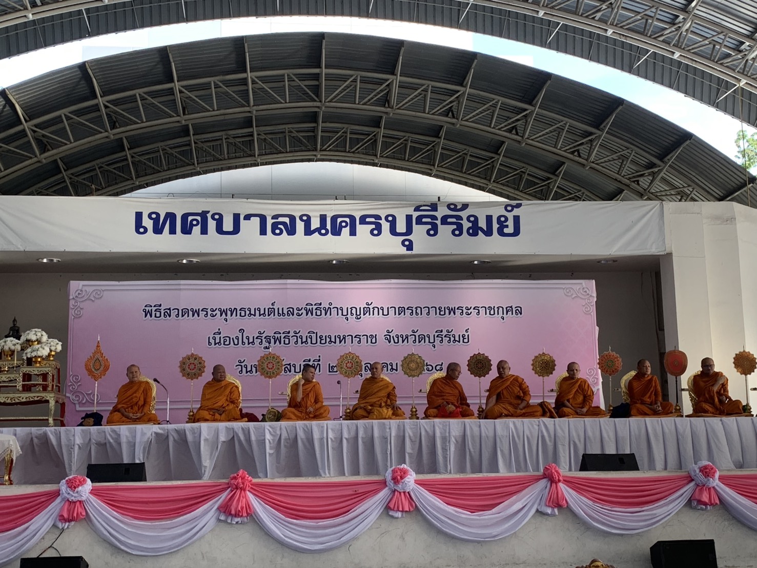 วันที่ (23 ต.ค. 68) เวลา 07.30 น. มหาวิทยาลัยรามคำแหง สาขาวิทยบริการฯ จังหวัดบุรีรัมย์ ร่วมพิธีสวดพระพุทธมนต์ และทำบุญตักบาตรถวายเป็นพระราชกุศลแด่พระบาทสมเด็จพระจุลจอมเกล้าเจ้าอยู่หัว รัชกาลที่ 5 เนื่องในวันคล้ายวันสวรรคต 23 ตุลาคม 2568 ที่โดมสวนรมย์บุรี 200 ปี เทศบาลนครบุรีรัมย์ โดยมีพระสงฆ์สมณศักดิ์ 10 รูป สวดพระพุทธมนต์ จากนั้นพระสงฆ์ 158 รูปเดินรับบิณฑบาต